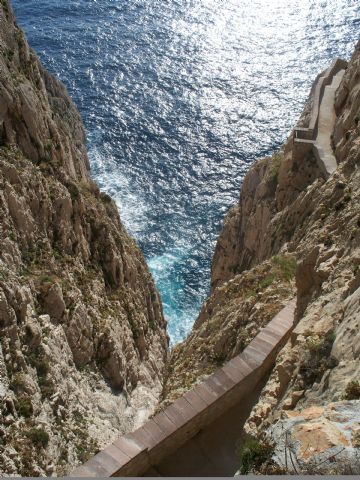 Saliamo a Nuoro, ma non ci piace, visitiamo alcuni siti archeologici ma li troviamo un po' abbandonati. Arriviamo ad Alghero e ci fermiamo in una piazza vicino al porto. Facciamo un Giro ad Alghero e scopriamo che nelle vicinanze ci sono delle grotte. Decidiamo di andarle a visitare. Si tratta delle grotte di Nettuno. Scendiamo i 650 gradini per arrivare alla grotta e riusciamo a fare l'ultimo giro. Siamo in 5. Noi tre, due inglesi e la guida che deve essere tedesca. Ci fa una spiegazione dettagliata e affascinante, siamo affascinati dai racconti di ciò che accadeva quando la grotta veniva usata come sala da ballo da Carlo Alberto di Savoia e rimaniamo estasiati dalla spiegazione di come si sono create le concrezioni. Usciamo e dobbiamo risalire tutti e 650 i gradini per arrivare al camper. Riprendiamo il Camper e ritorniamo ad Alghero. Ceniamo, usciamo a fare un giro sui bastioni, mangiamo un gelato e facciamo alcune spese. Quest'anno facciamo 25 anni di matrimonio e così Ale mi regala la fede sarda.