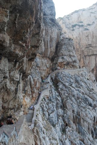 Lunedì 13: partiamo alle 07.00 direzione Grotte del Gigante a Capo Caccia. Posteggiamo nel piccolo posteggio davanti l'ingresso (arrivate presto o non trovate posto), ci sono le visite guidate ogni ora a partire dalle 09.00, 13 euro gli adulti 7 i bambini, per vedere le grotte si fanno a/r 1300 scalini (non un errore). Le grotte sono molto belle e gli scalini che scendono lungo il costone roccioso fa sembrare tutto bello. Tornati al camper alle 11.40, ci dirigiamo verso Stintino, nostra intenzioneè fare un bagno nel bellissima spiaggia della Pelosa, peccato che non c'era parcheggio neanche per un motorino, figuriamoci un camper. Posteggio al parcheggio del centro storico, detto così non perchè si trovi dentro il paese ma perchè è a 5 minuti si al centro, il parcheggio praticamente quello del cimitero, molto comodo per una passeggiata serale. Dopo pranzo ci spostiamo sulla spiaggia delle Saline, piena di poseidonia, pianta marina che comunemente, sbagliando, chiamiamo alga, mare non certamente paragonabile a quello visto alla pelosa. In serata mi riporto sul posteggio del centro storico, e andiamo a fare una passeggiata in paese, è nostra intenzione quella di prenotarci per l'escursione sull'isola dell'Asinara. Andiamo in agenzia, sulla strada principale, e prenotiamo l'escursione con il trenino verde con partenza dal porto. L'escursione si può fare in barca, con il fuoristrada, con l'autobus, con i trenini o a piedi, traghettando e muovendosi sull'isola con l'autobus di linea, attivo ad Agosto. Optiamo per il trenino perchè ha un costo relativamente contenuto, con guida, 45,00 euro per adulti e 30,00 per i bambini, che mazzata.... Quelli dell'agenzia ci consigliano di posteggiare il camper nel parcheggio della Guardia Costiera, gratuito e con il sentiero a tre minuti dall'imbarcazione. Buona notte con un silenzio tombale.