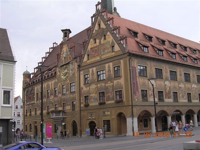 Raggiungiamo Ulm dove troviamo posto nel parcheggio camper P1 gratuito (vicino allo stadio). In bici seguiamo il Danubio e raggiungiamo il centro. Interessante la cattedrale Munster e l’edificio del comune, Rathaus con facciate decorate da dipinti, visita al museo del pane. Anche qui è festa ed assistiamo al concerto di una banda nella piazza del comune. Pomeriggio giro in bici lungo l’Iller affluente del Danubio, parco naturale immerso nel bosco, una marea di persone lo discendono con gommoni e ogni sorta di mezzi galleggianti sfruttando la leggera corrente del fiume. Pernottiamo ad Ulm, ma a pochi Km., a Gunzburg c’è un grazioso parcheggio camper 5 € a notte.