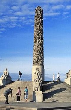Mangiamo al Kaffistova, uno dei caffè ristoranti più antichi della città, consigliato dalla nostra guida verde del Touring (sono socio) dalla quale non mi separo mai in viaggio. È un self-service ma tutto è molto elegante. Abbiamo gustato piatti norvegesi a prezzi modici e con porzioni abbondanti. Polpette di carne fatte in casa ogni giorno e pesce fresco. Kaffistova si trova in Rosenkrantz gate 8. Spendiamo meno dell’equivalente di 45 euro in tre. Nel pomeriggio passeggiata al Parco di Vigeland (Vigelandsparken), tappa obbligatoria ad Oslo. Ci arriva il tram numero 13 o la metropolitana alla fermata Majorstuen. Ingresso gratuito. Accoglie 212 statue di bronzo e granito nonché il monolito che chiude la prospettiva alto 14 metri, tutte opere dello scultore norvegese Gustav Vigeland.
