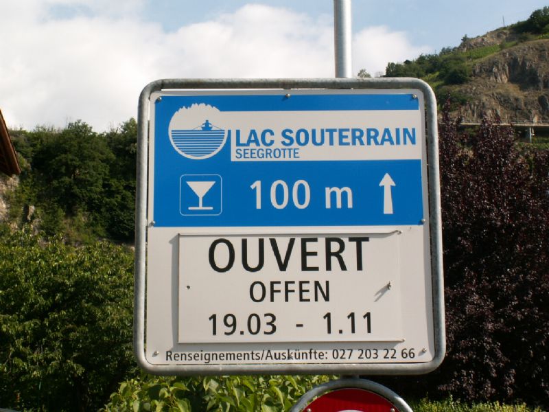 Uscendo dall’autostrada a Sion est, il lago sotterraneo è ben indicato fin dalla strada cantonale.