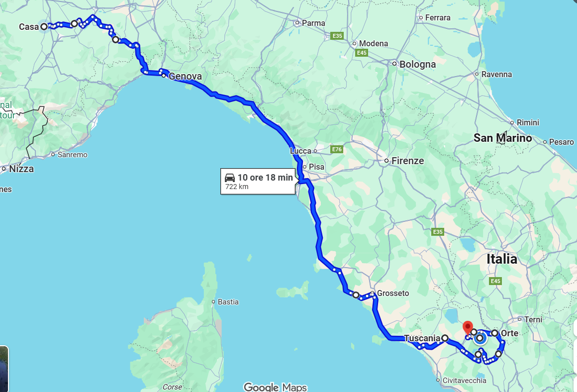 Sveglia ore 7:00, pronti per destinazione Francia-Borgogna. Do ancora uno sguardo al meteo: settimana prossima mette pioggia tutti i giorni, quindi decidiamo di cambiare rotta. Stampo il programma Tuscia-Toscana già pronto. Colazione e si parte.