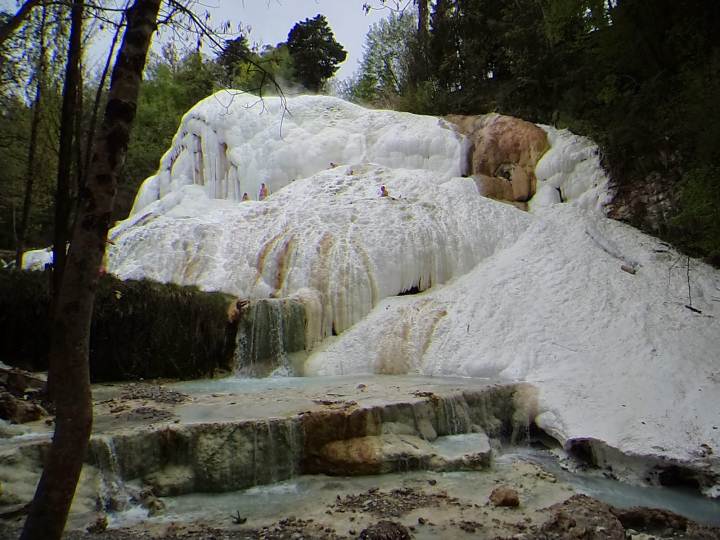 Prima tappa in Toscana, ai Bagni di San Filippo. E' una sorgente termale che sorge in mezzo ad un bosco. Nonostante fosse già settembre, era ancora molto frequentata. E' comunque piacevole rilassarsi nell'acqua bollente di quella che chiamano "La Balena Bianca", la formazione che l'acqua termale ha scavato creando tante piccole pozze in cui accoccolarsi: più si sale più l'acqua è calda.