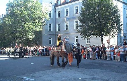 18 settembre 2004 ![]() Stadio Olimpico di Monaco di Baviera Arrivati in centro, ci spostiamo a Theresiewiese per assistere alla grande parata di apertura della Oktoberfest 2004. Purtroppo la mia fotocamera fa le bizze, e dopo alcuni scatti si rifiuta a fare il suo dovere, quindi a malincuore non posso documentare a dovere la splendida parata con carri stupendi e gruppi folcloristici in costume. ![]() La grande parata inaugurale dell'Oktoberfest 2004 ![]() Terminata la parata, prima di immergerci nella bolgia della festa, facciamo una passeggiata in centro, la fotocamera ha rimesso giudizio e ritorna a funzionare. ![]() Marienplatz - Rathaus (municipio) e Torre del carillon Dopo aver pranzato, ci immergiamo nel cuore della festa.
