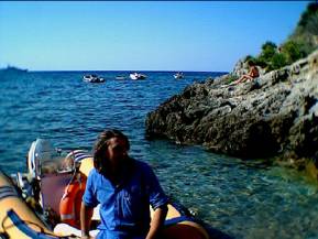 2003 Mangio un panino in fretta nella caletta che si vede sopra - “sembrava estate” - e a malincuore torno all’ormeggio pensando che mi attendeva solo un viaggio noioso di circa altri 350 km. Provo vedere le varie guide turistiche che ho, ma dicono poco e vedono le cose solo dal punto di vista storico, non paesaggistico e sportivo, mi indicano le solite città. Accendo il baracchino, parlo con dei camionisti e chiedo consigli sui paesini da visitare strada facendo, mi rispondono che li è tutto bello. Allora esco dall’Aurelia e percorrendo una stradina di montagna,