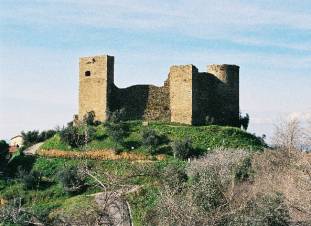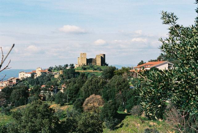 Arrivo a Scarlino, un minuscolo paesino con questo castello nel verde.