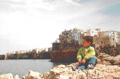 Visitiamo all'interno diversi trulli (fra cui il Sovrano, così chiamato perché è l'unico a due piani). Scendiamo ancora verso sud ma non riusciamo a fermarci a Ostuni perché piove di nuovo, così risaliamo per Polignano a Mare (BA), dove ci accoglie un normale parcheggio, da cui riusciamo a scendere fino al mare lungo un sentiero abbastanza comodo; il paesaggio è stupendo e gli dedichiamo più di una fotografia.