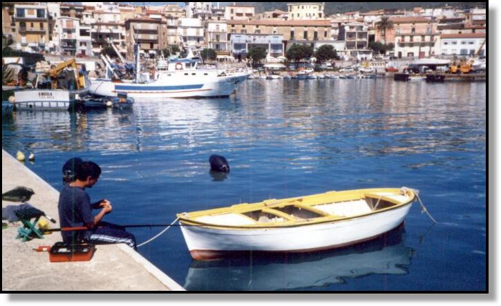 pescatori (foto): si sta molto bene. La temperatura è quasi estiva (28o in camper) anche se l'acqua del mare è ancora troppo fredda per potersi godere il bagno. Da qui partono gite per le grotte del promontorio di Palinuro (£ 15000, 1 ora e mezza). Sulla sinistra del porto parte un sentierino che conduce ad un forte diroccato da cui si gode del panorama sul golfo (visto un serpente, una locusta gigante e tantissimi lucertoloni azzurro-verde). In pomeriggio facciamo la gita in barca e visitiamo 4 belle grotte e tutto il promontorio. Il mare è molto bello ed anche le grotte sono suggestive (si entra con la barchetta in tutte) anche perché oggi il mare è una tavola. |