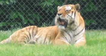 Nell'area adiacente troviamo le austere ed eleganti tigri siberiane, di grande dimensione, apparentemente distratte, vaganti qua e la oppure sdraiate magari nella vasca d'acqua per rinfrescarsi.