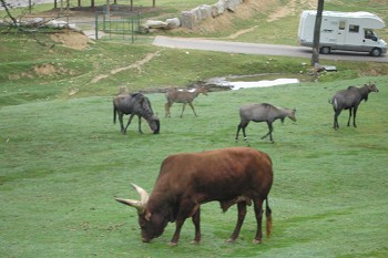 Il successivo cambio di area ci porta attraverso cancelli controllati e manovrati da un sorvegliante su una garitta (il cui compito è quello di assicurarsi che non vi siano infiltrazioni di animali da un'area all'altra), tra capre, bufali e altri animali di varia stazza, che condividono una vasta zona erbosa e si impegnano nel mantenere bassa l'erba.