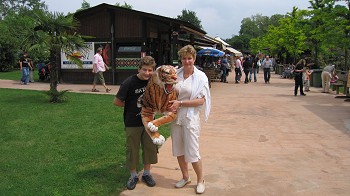 Pranziamo e nel pomeriggio percorriamo il sentiero nel bosco fino alla fattoria, dove - oltre a vedere gli animali 'domestici', come le bianche mucche chianine o l'enorme maiale sempre stanco, i pony (cavalcabili) ed i fagiani, e persino gli yack ed gli enormi bisonti americani, assistiamo alla dimostrazione di volo e caccia dei rapaci.