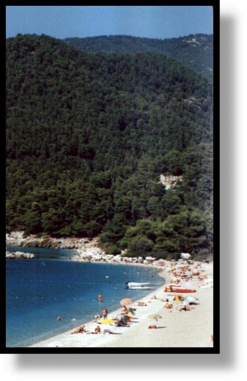 belle spiagge della Grecia). Qui i pini arrivano fino in spiaggia e