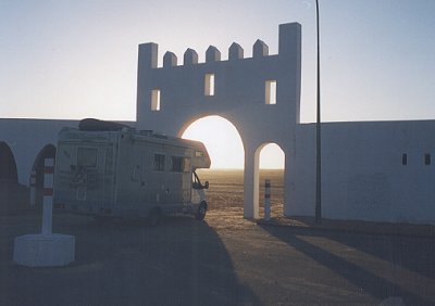 Ci vogliono un paio d'ore per lo sbarco e il disbrigo delle formalità doganali. Subito dopo lo sbarco partiamo per Sousse via autostrada (l'unica, che costa circa 1,5 DT). Arriviamo nel pomeriggio e su indicazione della polizia ci fermiamo per la notte in un grande spiazzo vicino all'hotel "Royal Beach" (di fianco al casinò). Si trova proprio a ridosso dell'ingresso del parcheggio dell'albergo dove c'è sempre un guardiano. Nello stesso spiazzo parcheggiano sempre i pullman che portano i turisti al casinò e ai locali vicini. Poiché è ancora presto facciamo una lunga passeggiata fino ad arrivare alla Medina (circa 2 km) ma è troppo tardi per la visita.