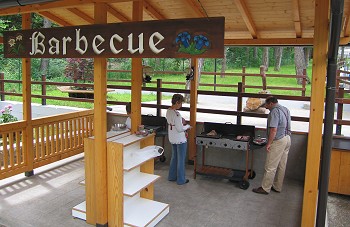 Eh si, perchè nel frattempo il menu di oggi è stato definito essere 'grigliata mista di carne', che viene cotta su uno dei moderni barbecue a disposizione degli ospiti.